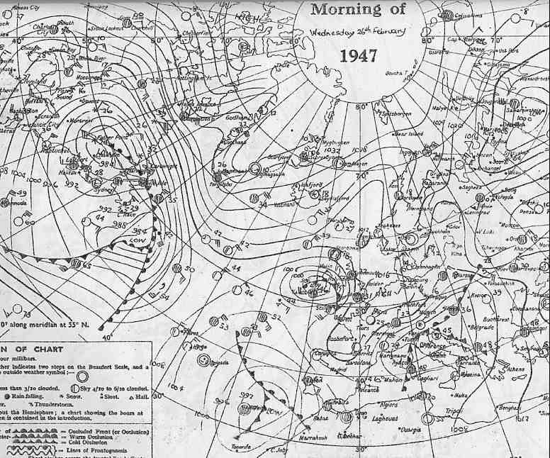 Winter 1947:Chart of Weather in the Northern Hemisphere at 00hr GMT